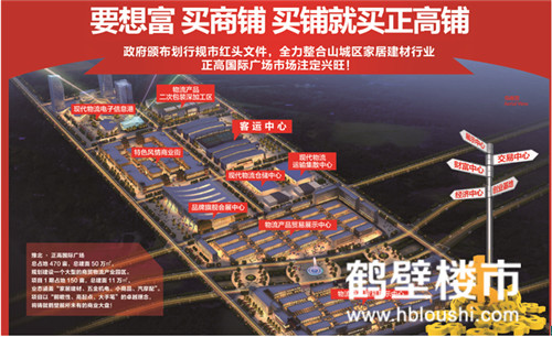 豫北•正高国际广场是鹤壁市重点建设项目,项目总占地470亩,总建面50万㎡,总投资22亿元。项目整体规划建设为一个大型的商贸物流产业园区,其中一期占地150亩,建筑面积11万㎡,分A、B两区开发建设,其中A经营业态涵盖家具建材、五金机电、小商品、汽摩配等。