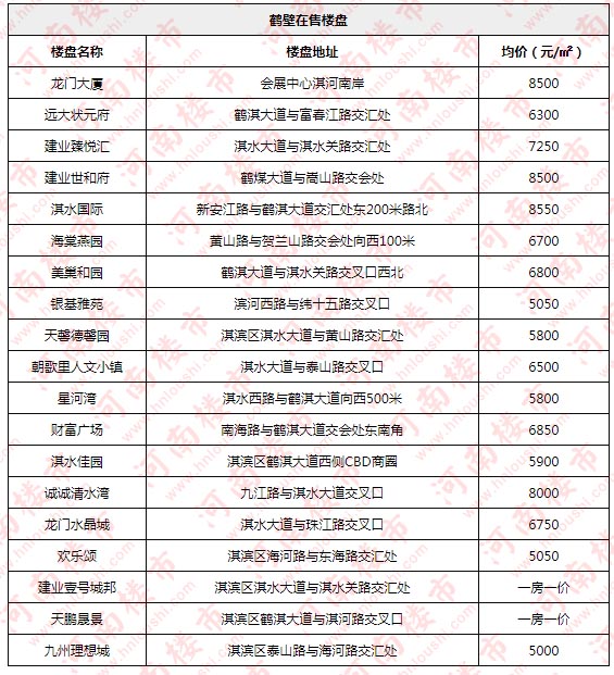 今日,河南楼市网联合鹤壁楼市网为您准备了2019年12月鹤壁市在售楼盘均价,以便置业者参考置业,如有楼盘价格与实际不符者,请与我们联系,我们将及时更正!
