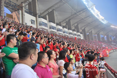 楼市网讯:建业·桂园组织鹤壁球迷到郑州看球赛,2013中国足球协会甲级联赛在郑州航海体育场举行,下午19点30分随着一声“全体起立”的口令,全场顿时安静,全体齐唱“中华人民共和国国歌”拉开了河南建业VS成都谢菲联球赛开始的大幕!