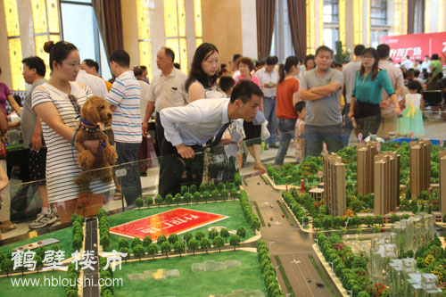 哈哈,你看!这位美女抱的可爱狗狗也在专注的看房耶,难道它也想要?!