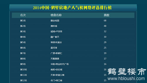 2、本次评选活动体现全民参与的特点,鹤壁楼市网制作并开放评选网页专题,有网民自发投票评选。
