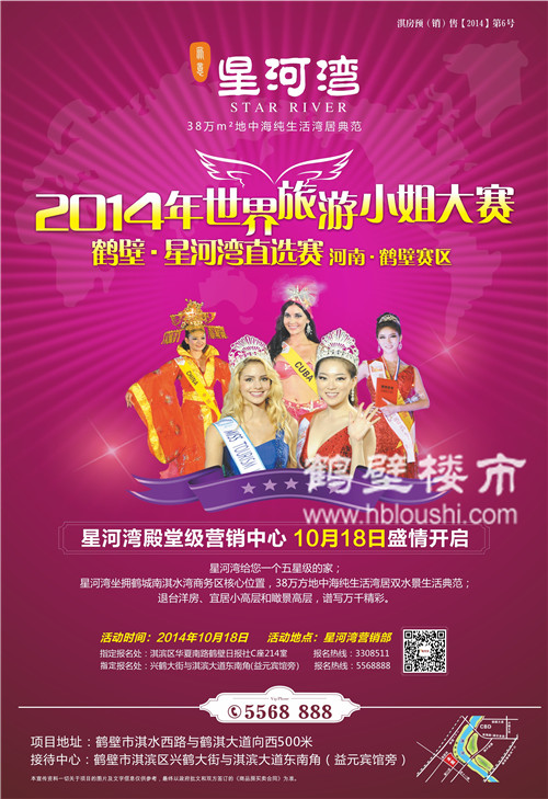 星河湾•2014世界旅游小姐鹤壁直选赛以传播鹤壁旅游文化为目的,通过世界旅游小姐冠军总决赛这一平台,借助省内外媒体的宣传,让全国乃至世界更全面的了解鹤壁旅游资源和历史文化,提升鹤城知名度。