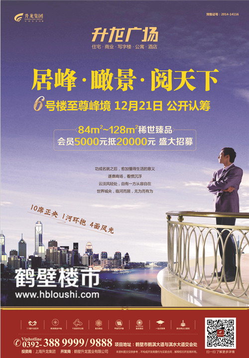 鹤壁楼市网讯(价格 户型图 动态 楼盘评论): 升龙广场6号楼至尊峰境12月21日公开认筹!84-128㎡稀世臻品,会员5000元抵20000元盛大招募!