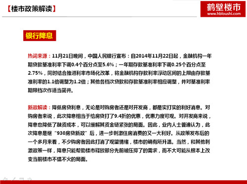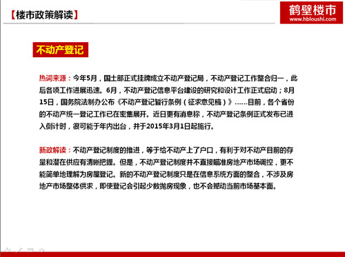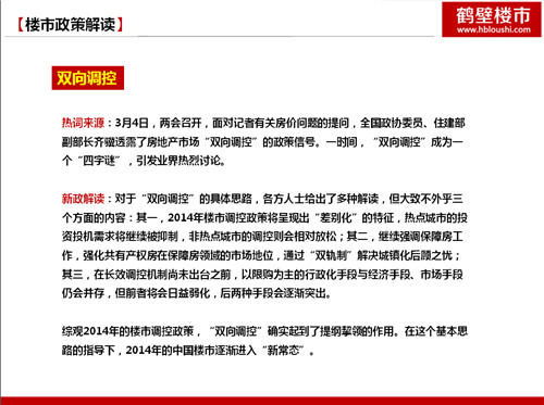 由河南楼市网数据研究中心联合鹤壁楼市网精心编制的《2014年鹤壁房地产市场行情分析报告》于2015年1月28日分别通过鹤壁楼市网WAP平台、网站平台、微信公众平台隆重发布。本报告从国内房地产总体概述、全国宏观经济环境、房地产政策法规、鹤壁土地交易行情、房地产市场交易行情分析、楼市活动、鹤壁房地产面临的机遇和挑战、房地产市场展望等方面详细解读和分析,有理有据,图表分明,数据详实,成为鹤壁房地产业第一份详实阐述鹤壁2014年房地产市场行情的报告,也是鹤壁楼市网2015年新春之礼,以飨各位新老朋友和网友!