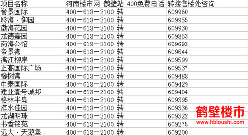 鹤壁楼市网讯: 想买房可是楼盘众多要一个个找号码?外地号码打到售楼处咨询长途吃不消?鹤壁楼市网帮你say“NO”!从现在起,这些都不是问题。