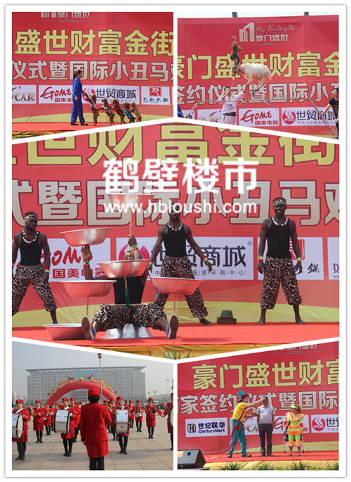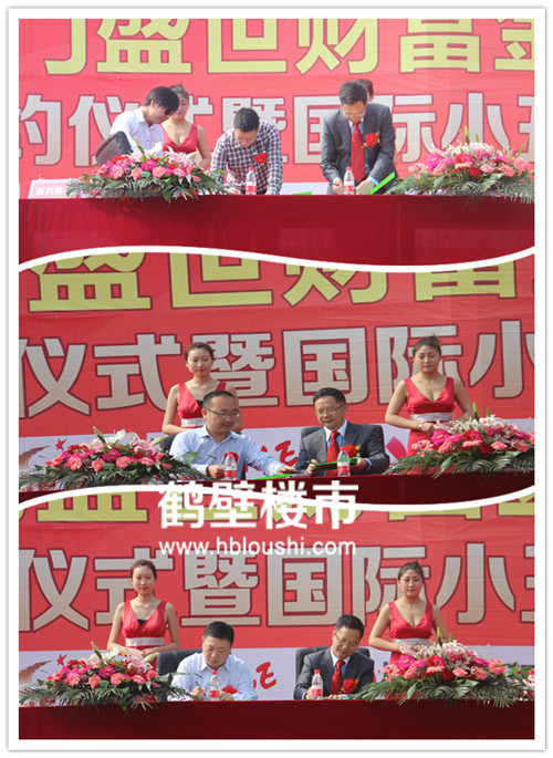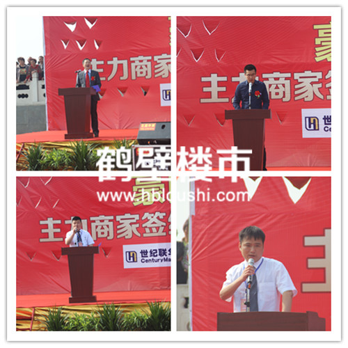 首先,由鹤壁豪门盛世置业有限公司董事长张少云先生,接下来世纪联华、国美电器、奥斯卡影城、郑州世贸购物中心、巴奴火锅、小天使儿童城依次签约,最后由郑州世贸购物中心推广主管卢云高先生发言、鹤壁豪门盛世销售经理楚永贵作项目介绍、鹤壁豪门盛世招商部经理艾俊超作招商介绍。