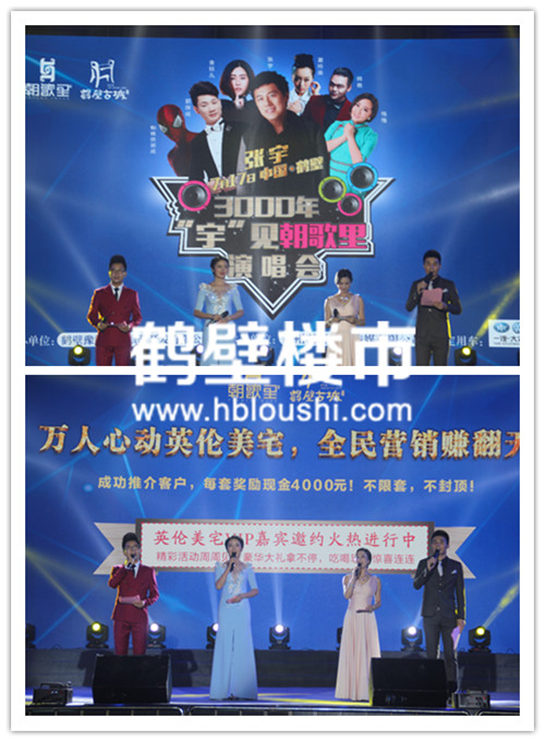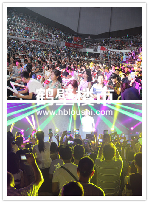 不到7点体育馆广场前呈现出一场声势浩大的场面,体育馆入场口人山人海。一会儿工夫,鹤壁楼市网小编到现场一看,哇!容纳5千人的体育馆座无空席,角角落落里都挤满好多歌迷。晚8点半演唱会正式开始,现场的欢呼声、尖叫声、轰动整个鹤城,观众们跟随着美妙的歌声挥洒着手中的荧光棒,每位歌手的演出都能让现场的观众进入火爆的高潮中。