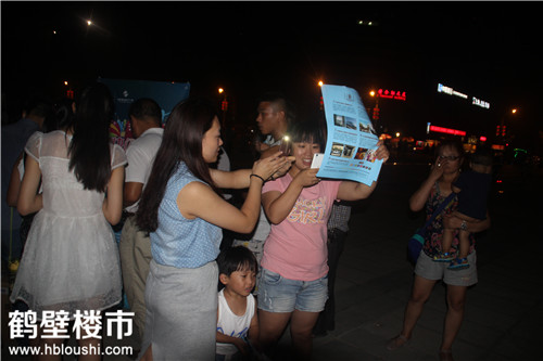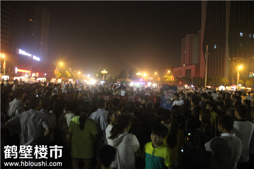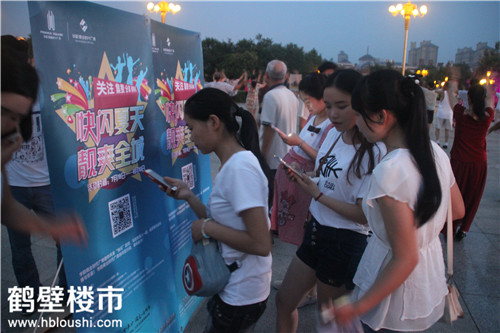 风靡一时的神曲《小苹果》再次在世纪广场和会展中心的夜空中响起,性感火辣的舞者让整个夜晚不再平静,整个广场的人员在音乐和舞蹈的带动下全部嗨起来!华韵•商业时代广场现场还准备了扫微信送餐具活动,积攒送好礼,积攒越多礼品更大。礼品有鼠标垫、保温盒、床上四件套、少儿培训班课程、暑期夏令营、少儿培训班课程加暑期夏令营、少儿培训班课程加暑期夏令营加纯金饭碗一个,真是大手笔啊!好了,话不多说,看看鹤壁楼市网当晚用相机记录的精彩时刻吧!