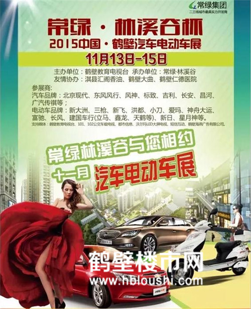 11月13日-15日山城首届汽车、电动车展览会!林溪谷商业广场盛大开幕!做为山城首届车展,各大厂商积极参展,不管是国产的、还是合资、自主的,纷纷拿出自家畅销车型前来参展,只为给山城群众带来不一样的享受,让您在家门口就可欣赏到各种车系、车型。此次展览会由鹤壁教育电视台主办、常绿·林溪谷协办、鹤壁楼市网全程报道。