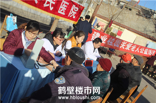 1月14号上午山城区建业•桂园早早来到了山城区小庄村原村委会园内福康老年公寓现场为老人们免费体检身体,免费理发!