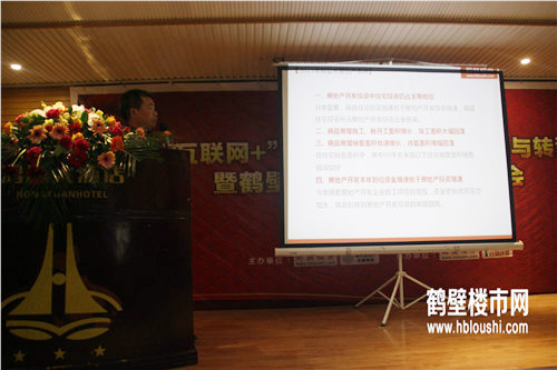 下午4点活动正式开始,河南楼市网总经理王冬红女士、鹤壁楼市网运营总监张琦先生,分别讲话。并解析作为一个辐射全国的房产交易服务平台——分销快客。