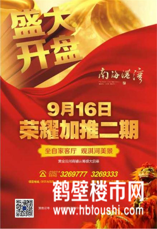 鹤壁楼市网讯: 南海港湾鹤壁一线河景房,五证齐全,二期盛世加推!9月16日盛大开盘!