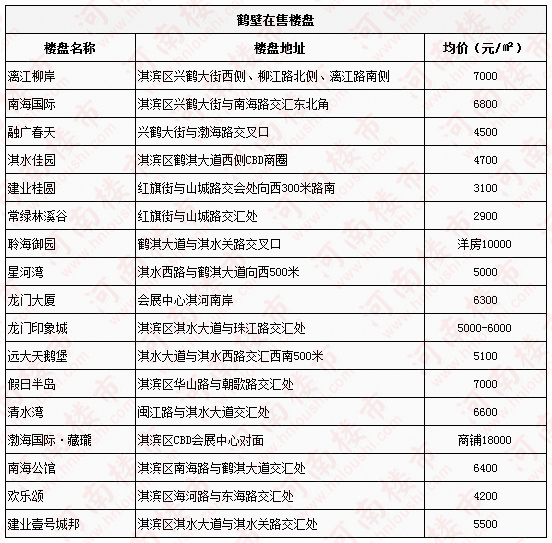 为了给置业者正确的购房指向,鹤壁楼市网数据中心重磅推出【2018年2月份鹤壁市在售楼盘价格行情】,搜罗鹤壁楼盘价格动态,提前探路楼市走向,为购房者提供指导性的楼盘价格!买房就看鹤壁楼市网。如有楼盘价格与实际不符者,请与我们联系,我们将及时更正!
