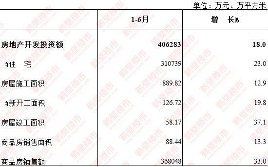 2017年1-6月鹤壁市房地产开发投资为40.63亿元,增长18.0%;其中住宅开发投资额为31.07亿元,增长23.0%。2017年1-6月鹤壁市房地产房屋施工面积为889.82万平方米,增长12.9%;其中新开工面积为126.72万平方米,增长19.8%。2017年1-6月鹤壁市房屋竣工面积为58.17万平方米,增长37.1%;商品房销售面积为88.44万平方米,增长13.3%;商品房销售额为36.80亿元,增长33.0%。