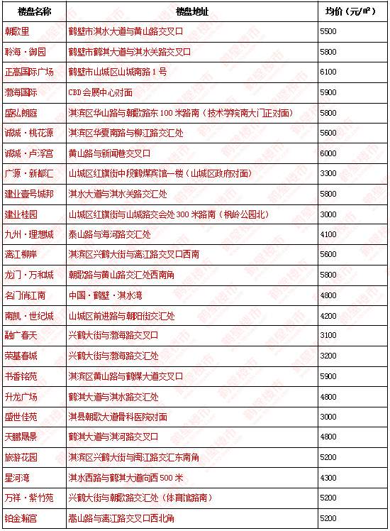 五、2017年6月鹤壁市在售楼盘价格行情: