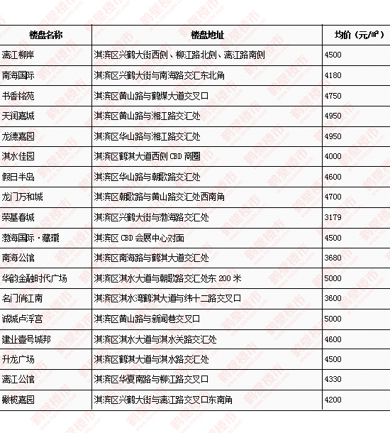 五、2017年9月鹤壁市在售楼盘价格行情:
